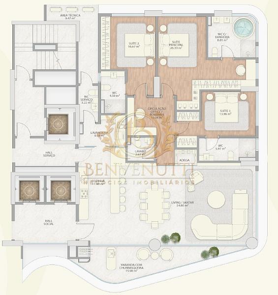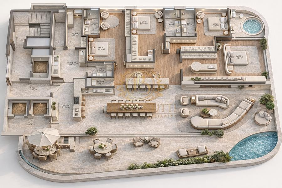 08 plantas diferenciadas e 16 coberturas, com áreas de 218 a 531m². Com valores a partir de R$9.000.000,00
