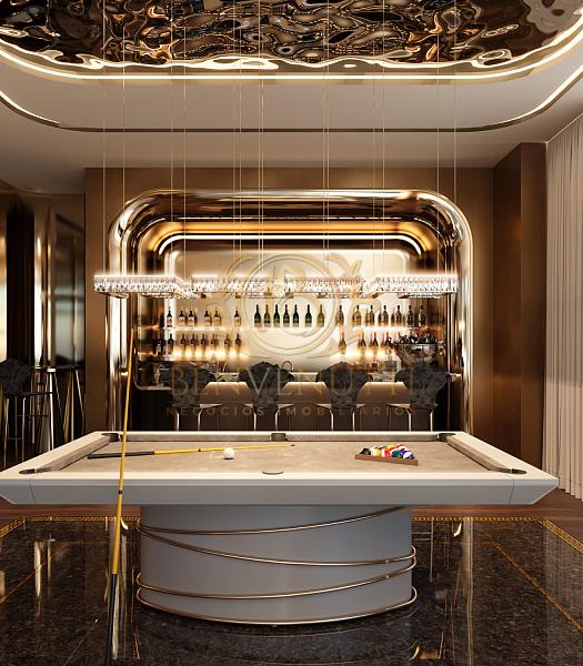 Lounge Clube, dividido em: sala de jogos, salão de festas, espaço simulador